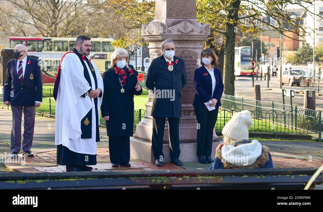 Brighton Uk 5th November 2020 Brighton And Hove City Council Dignitaries Including The Mayor Cllr Alan Robins Centre At A Wreath Laying Ceremony Prior To Remembrance Sunday This Coming Weekend During